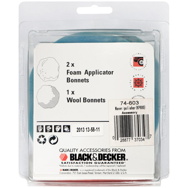 ผ้าขนแกะขัดเงา จากแบรนด์ BLACK&DECKER มาพร้อมฟองน้ำในชุด สำหรับงานขัดเงาโดยเฉพาะ ใช้ได้กับทุกพื้นผิวที่ต้องการความปราณีตเป็นพิเศษ ด้วยขนที่มีความหนานุ่ม ยืดหยุ่นสูง ขึ้นเงาได้ดี และไม่ทำให้พื้นผิวเป็นริ้วรอย สามารถใช้ได้กับเครื่องมือหลากหลายทั้งกำลังลม หรือกำลังไฟฟ้า นอกจากนี้ยังล้างทำความสะอาดได้ง่าย ทำให้ประหยัดค่าใช้จ่าย ใช้งานได้หลายครั้ง